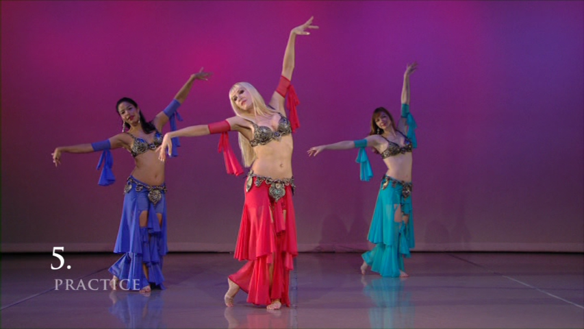 Sensual Goddess covers an admirable amount of basic territory: hip work, figure eights, two kinds of turns, arabesques, undulations. But without a doubt, it is arm heavy. There are many beautiful arm patterns here, most of which I hadn’t seen anywhere else. Neon draws on poses a lot for both dramatic effect and in order to make the choreo accessible. And let me tell you — it winds up being a workout for the arms!