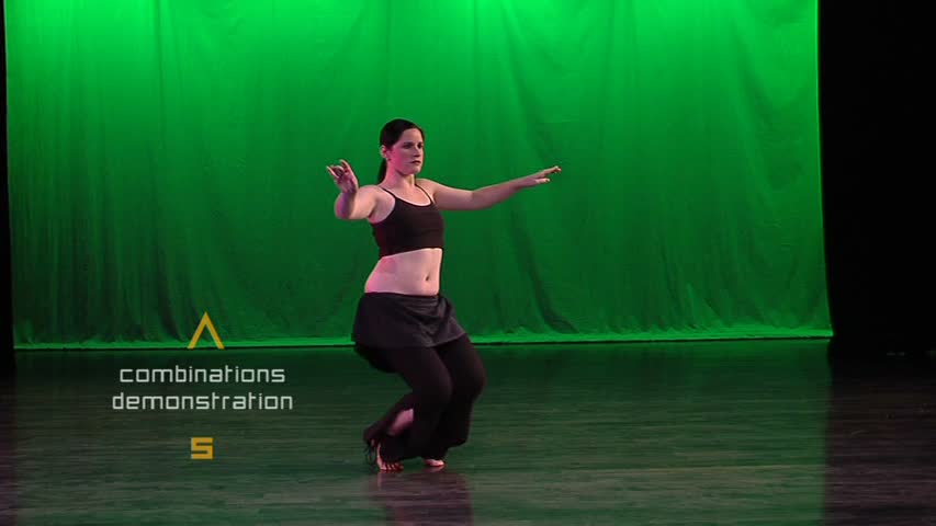 The combos themselves are quite short and focused on linking together moves using the torso, hips, abs, and arms. There are no traveling steps. These are small units you then drill like crazy to get your body moving smoothly from one kind of isolation to another. In some cases, Beaman will present an easier version and a tougher version of a combo — and then she has you drill both.