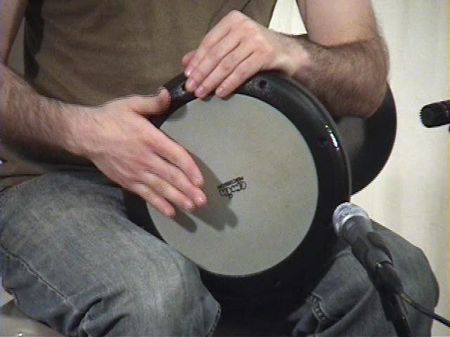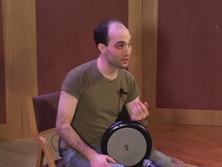 After a brief written introduction to the DVD, we have a brief warm up routine (primarily for dancers, but drummers are also invited to use it) led by Mariyah. This is not a full, thorough warm up, but rather an exercise in centering yourself using breath. Mariyah talks about how staying centered and connected to your breath is what helps you have energy for an entire drum solo (which I didn’t know), and the movements are indeed delightful. My one criticism here is that the instructions are only written on the screen, which makes it difficult to follow them during the frequent forward bends. Faisal Zedan follows with a brief discussion of the importance of posture and warming up for drummers.