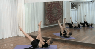Well, that’s what Pilates for Belly Dancers is all about. Ruby starts out slowly, really slowly, with posture and practice breathing both standing up and lying down. I loved the meticulous tiny movements that at least started giving me a sense of how the breathing and muscular contractions should feel. She then guides you through some classic pilates movements (the hundred, roll-ups, etc.) but interweaves exercises that help you gain control of the specific muscles useful for bellydance.