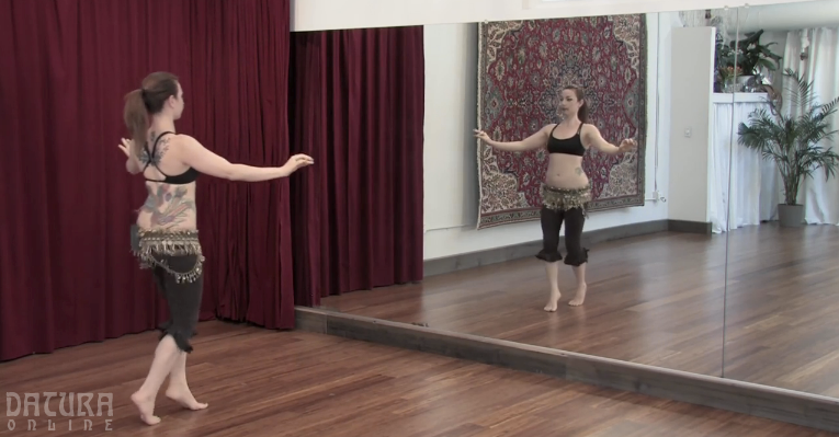 The video is 1 hour and ten minutes long. There was a brief but satisfying stretch to cool down with in the bonus content material, which also included the pilates section from Ruby’s Flawless Floorwork: The Lost Art of Belly Dance Floorwork DVD. The filming is clear throughout, though there is one blooper that was not edited out and a few camera cuts are confusing. Think filmed class, not pro DVD. Still, I had no problems following along.