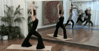 After a workout that is challenging if done attentively, Ruby has you practice some basic bellydance moves with special attention to the core. Finally, she teaches a short combination. In both of these segments, she explains what effects can be achieved with a strong, controlled pilates foundation — the fast spin that can stop on a dime, the quick-changing footwork that doesn’t make you bob up and down.